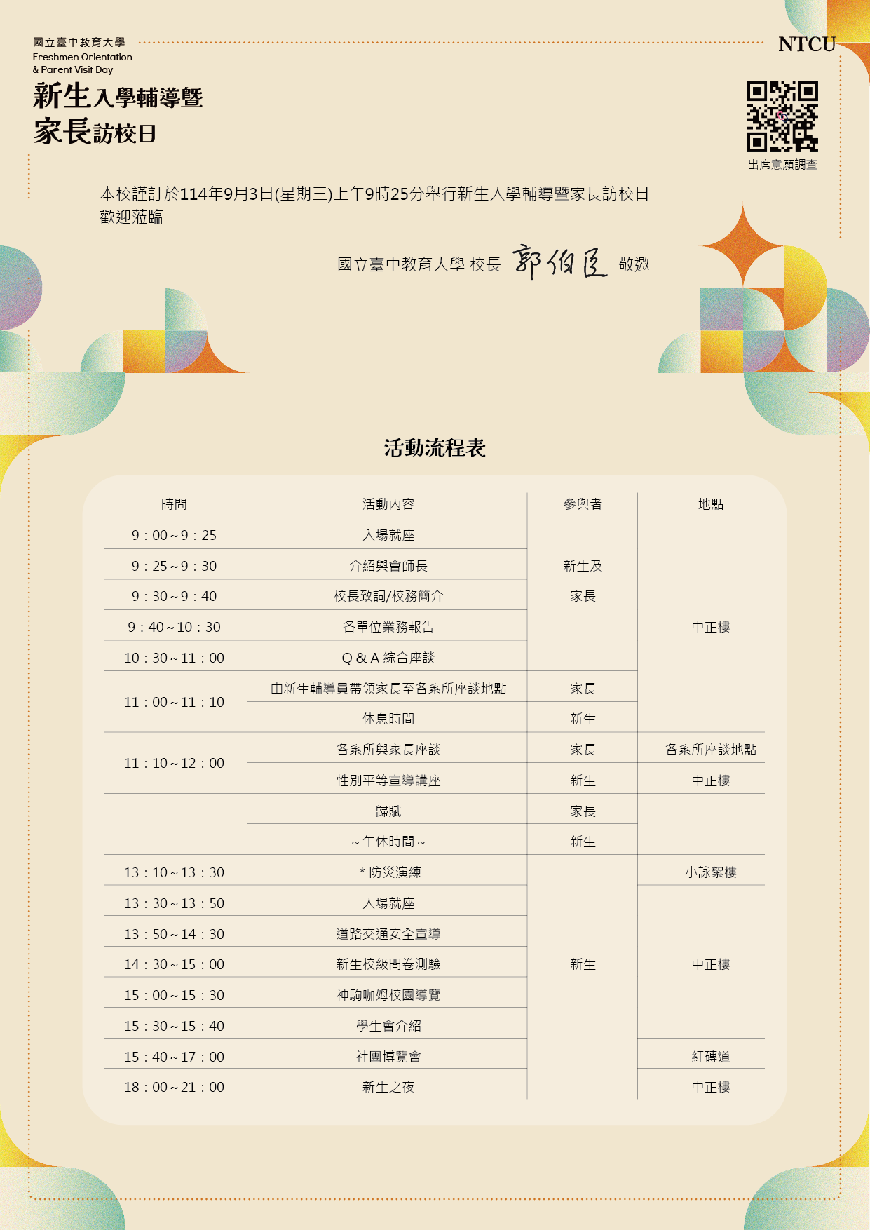 備註:囿於校地因素,原則以一家戶單位一台車為限(請家長多加利用路邊收費停車格),並未能保證皆有可停車位,車位額滿為止,請於活動日儘早入場,如造成不便,敬請見諒。